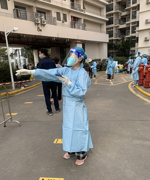 3月7日上午8點,隨著龍海家園北區(qū)響起廣播聲,前海金控公司的志愿者們又開始了新一天的疫情防控志愿工作。自龍海家園被劃為管控區(qū)后,他們便就地轉為志愿者,協(xié)助醫(yī)務人員開展大規(guī)模核酸采樣工作。