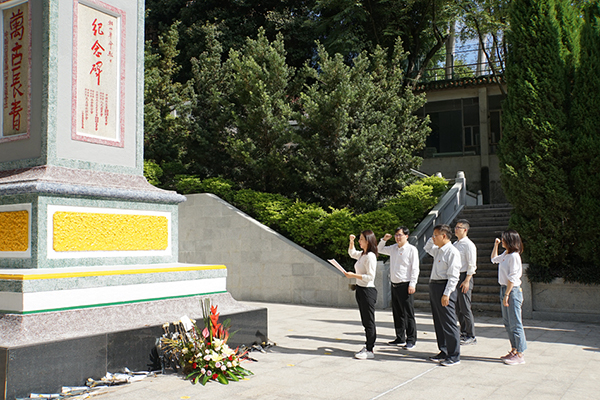 在潮州革命烈士紀念碑下,支部書記帶領支部黨員向紀念碑敬獻花籃,緬懷革命烈士,并在紀念碑下重溫入黨誓詞,向革命烈士表達敬意的同時,也提醒大家不忘共產黨員的初心和使命。